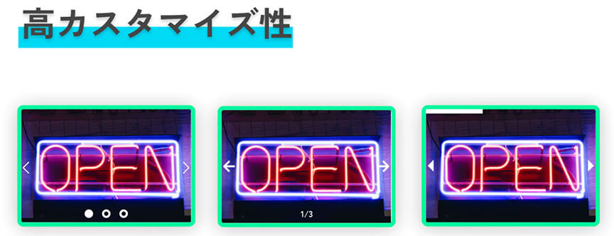 設定した複数の画像を連続で表示させる機能です。自動的に次の画像が表示されるので、ユーザーが行動を起こさなくても見せたい画像を表示できます。ただ、単に画像を表示させるのではなく、「もっと見たい!」と思わせる工夫は必要です。それでは、スライドショーの特徴を詳しく見ていきましょう。